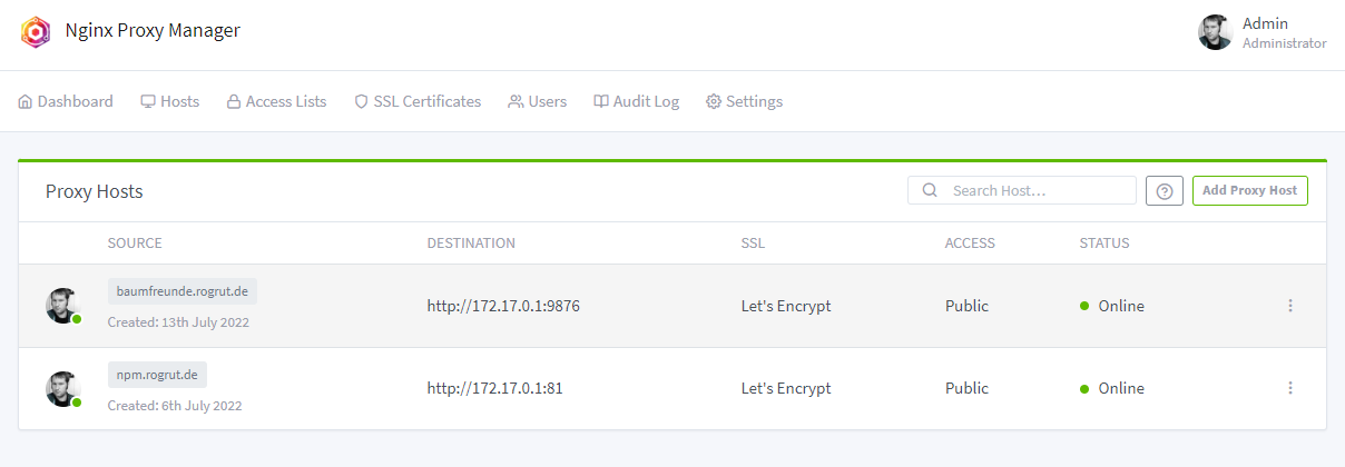 # dann noch DNS-Eintrag auf neue IP machen in hosttech admin center.